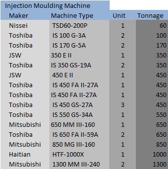 Our Plastic Injection Moulding Machines